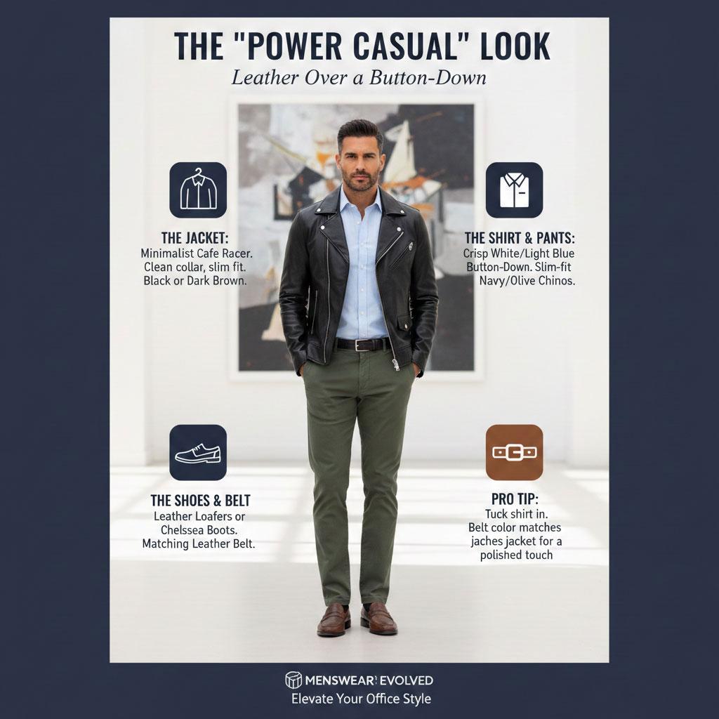 1. The "Power Casual" Look: Leather Over a Button-Down