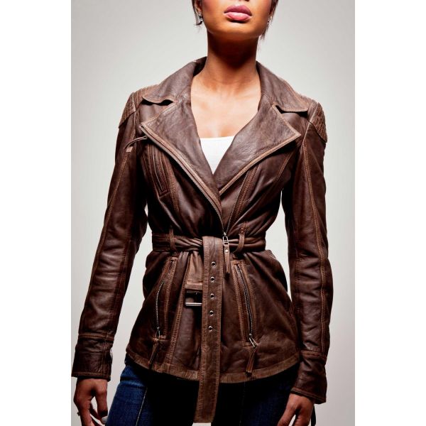 - Women leather jacket have adjustable waist strap